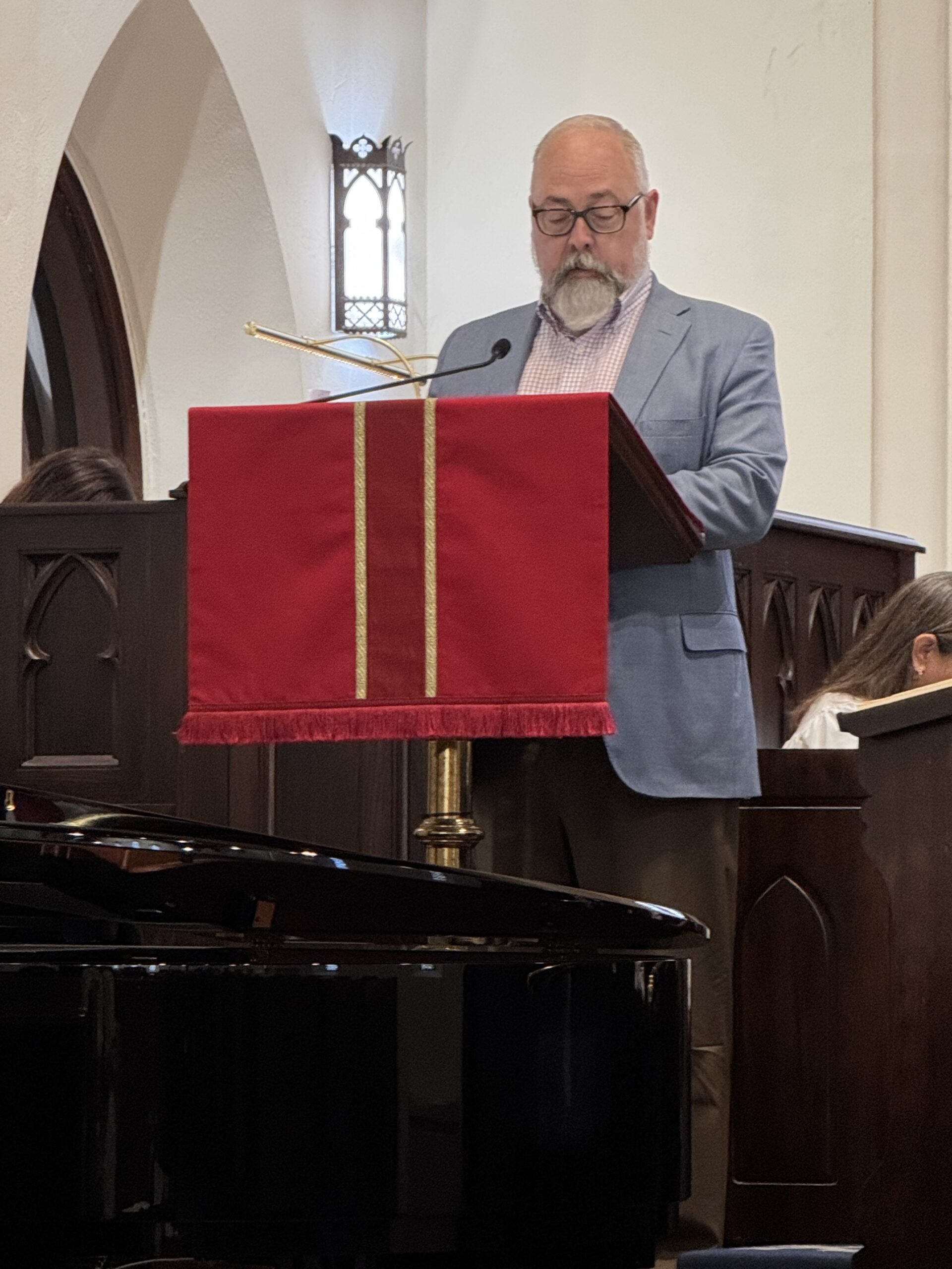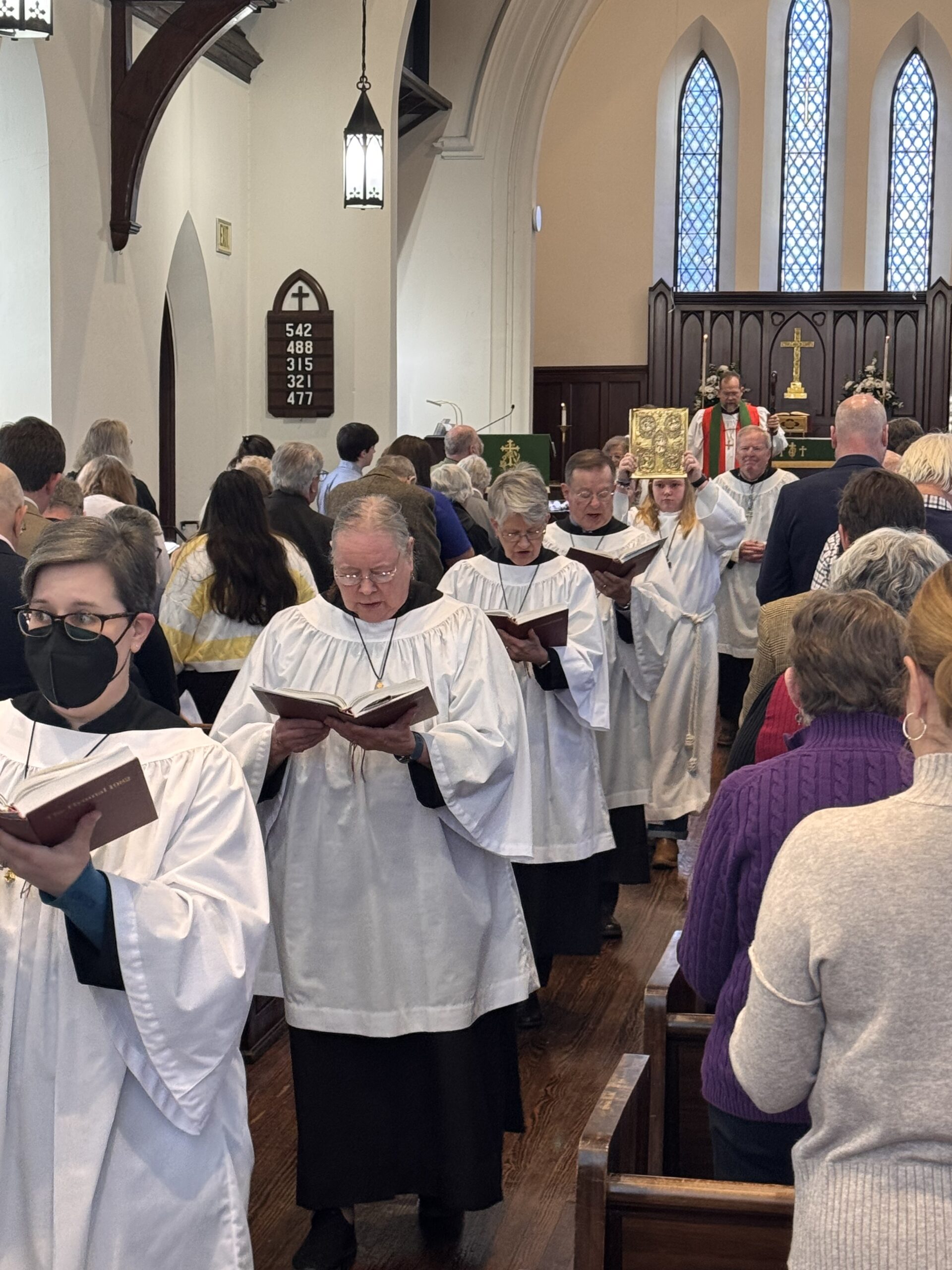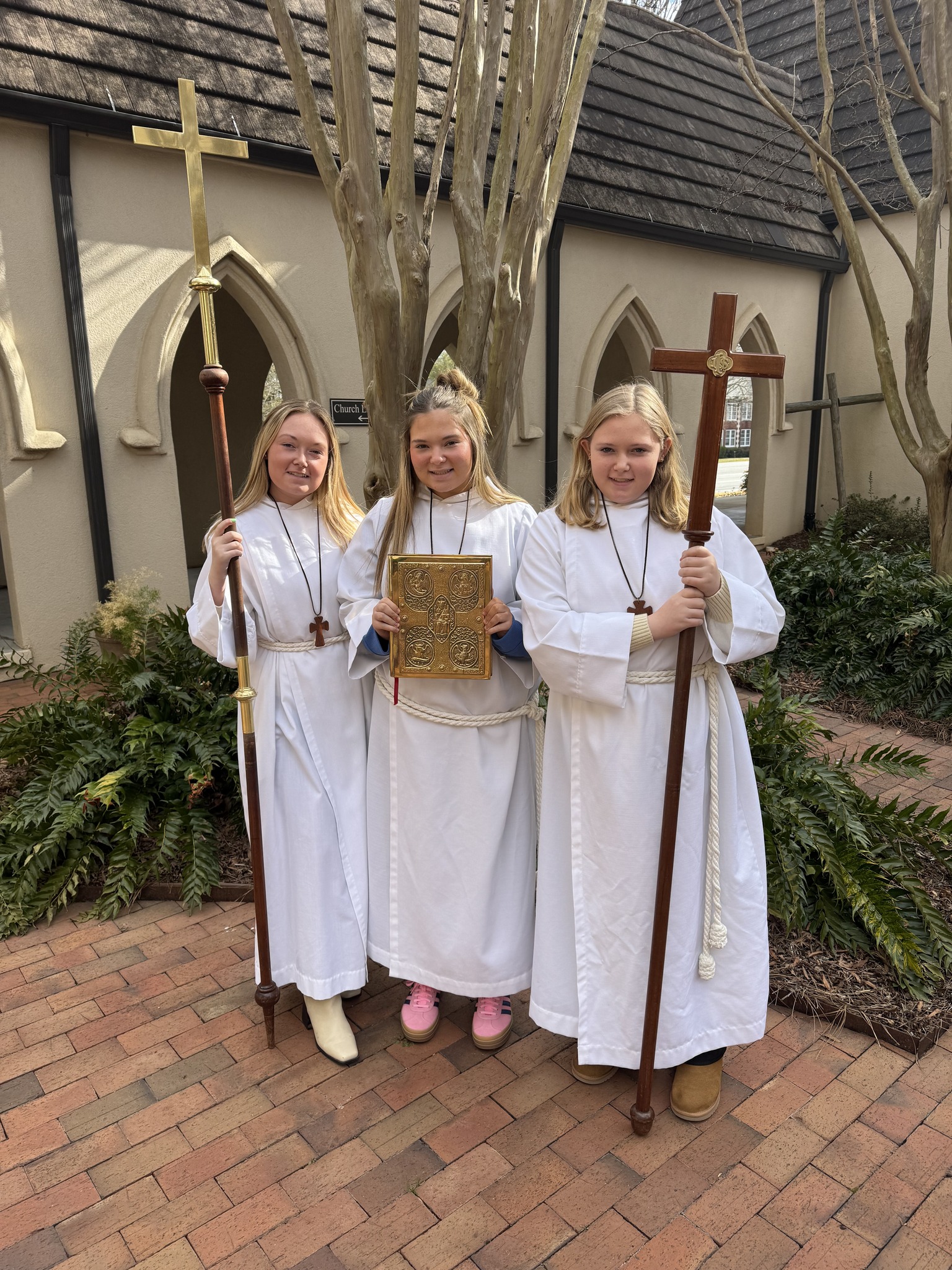 During a Sunday service, you might see acolytes carrying the cross, candles, or banners at the start and end of the service. They also help at the altar during Communion, prepare the table, hold the Gospel book, and assist the clergy as needed.